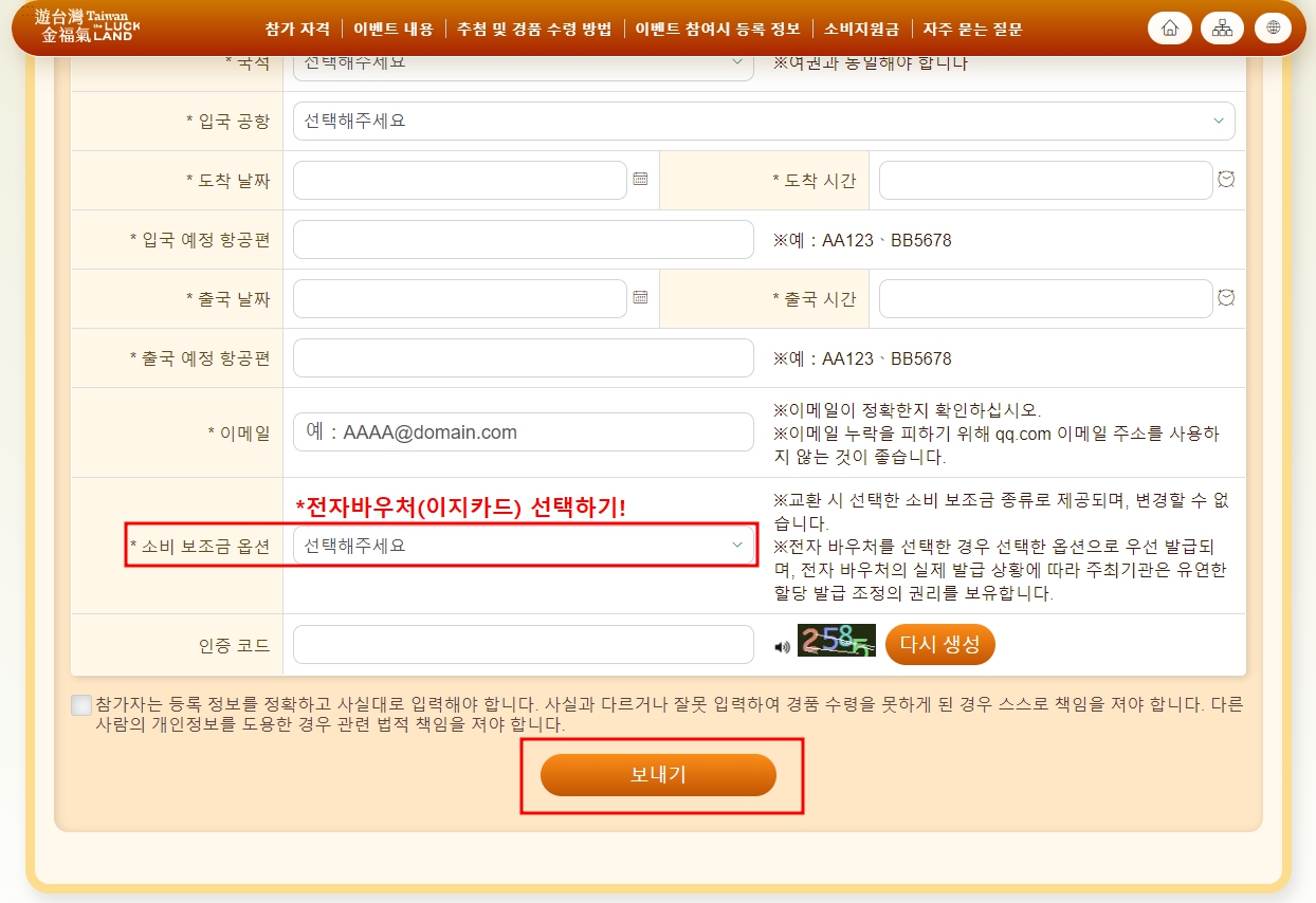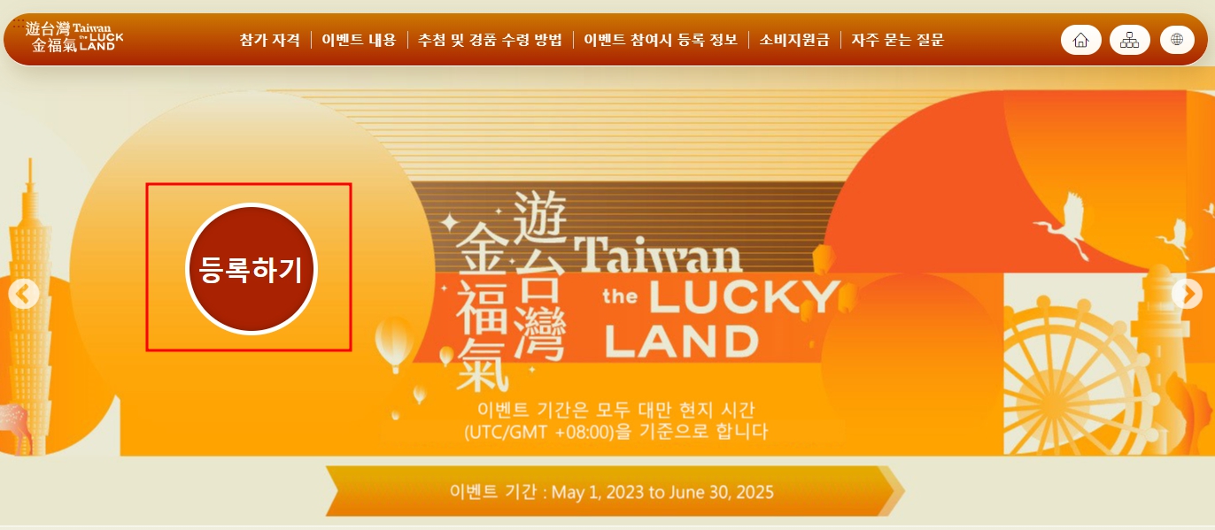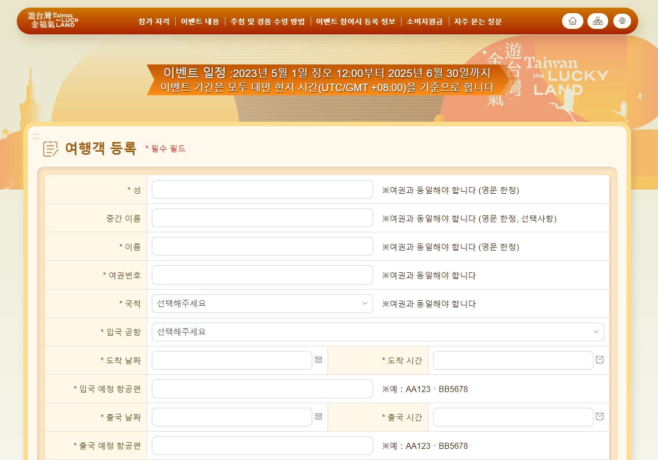 대만 도착시각 1~7일 전, 이벤트 홈페이지에서 온라인으로 신청할 수 있습니다.